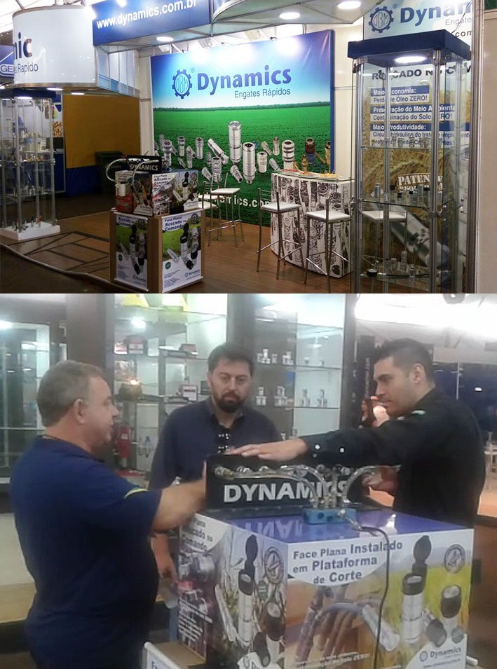 Dynamics, following it's schedule, re-assembled a coupling bench so that visitors could see the performance of the Flat Face couplings live. This product is the first flat face model developed in Brazil that allows the coupling of the male pin with residual pressure, providing its user with protection of the hydraulic circuit against contaminants, in addition to saving oil and preserving the environment. According to Fábio Manzato, Director of Dynamics, the company will soon have news contemplating requests from its customers.