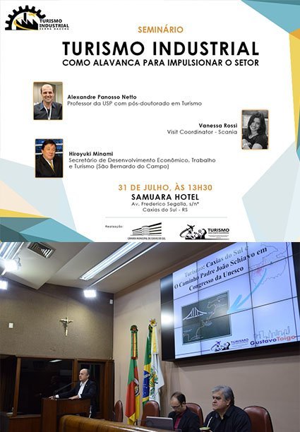 Aiming to open up tourism-industrial possibilities in Caxias do Sul, the seminar “Industrial tourism as a lever to boost the sector” was held on July 31, at Samuara Hotel. Promoted by the Economic Development Commission of the City Council of Caxias do Sul, the event brought together several businessmen from both the tourist trade and the industrial sector and served as a base and reference on how to develop the modality in the city and region.