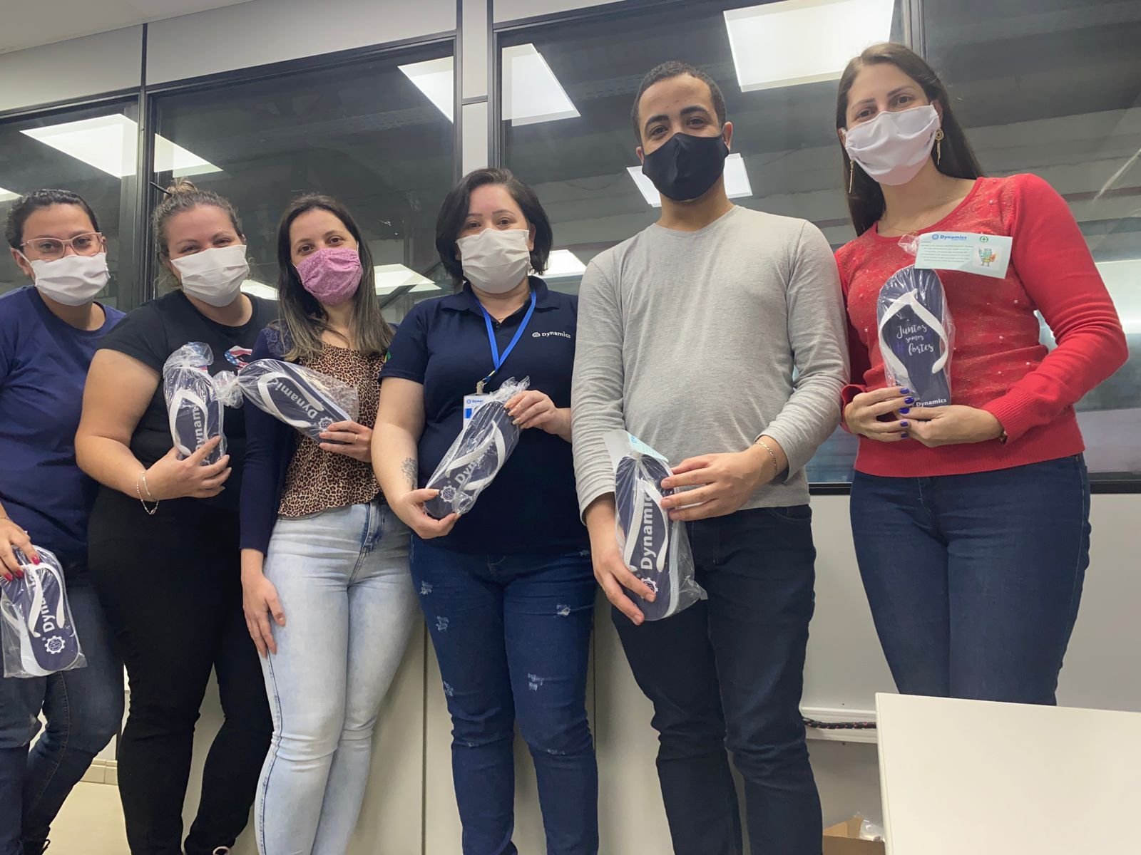 This Friday (10/01/21), Dynamics Team celebrated as we were informed that all company employees had completed the first stage of the COVID-19 vaccination plan. In addition, we have already reached 40.50% of professionals with the second dose applied. As a way of repaying everyone's commitment to the vaccination campaign, we were presented with a flip-flop with the slogan: “We Are Stronger Together”.