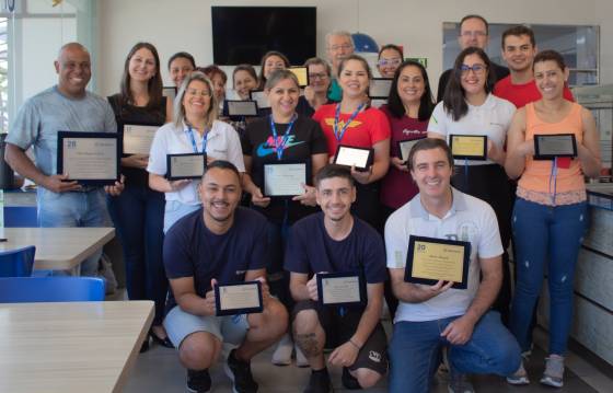 La cérémonie de reconnaissance a débuté par la remise de plaques aux collaborateurs ayant atteint des jalons significatifs dans leur ancienneté dans l'entreprise. Les hommages de cette édition étaient : Liziane, Fernanda, Mauricio, Vanja, Veronica, Dieison, Cinara, Aline, Alessandra, Taiane, Alexandre, Gislaine, Sirlei, Simone, Josiane, Ivete, Carla et Márcio Manzato.
