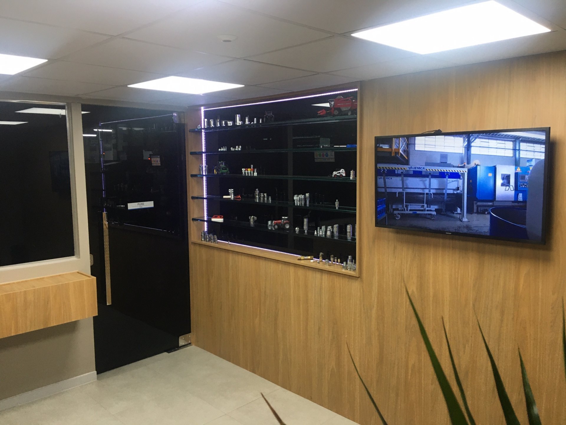 Cette semaine, la nouvelle zone d'accueil de Dynamics a été inaugurée. Cet environnement a été conçu pour offrir confort et interactivité aux visiteurs en attente d'être pris en charge. Des technologies innovantes ont été appliquées (éclairage automatique et présentation de vidéos aléatoires) pour mieux accueillir les personnes qui entrent dans notre entreprise. Un large échantillon de produits a également été mis en place, comprenant certaines applications des produits fabriqués par Dynamics.
